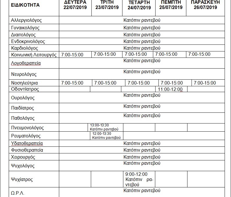 ΕΒΔΟΜΑΔΙΑΙΟ ΠΡΟΓΡΑΜΜΑ ΛΕΙΤΟΥΡΓΙΑΣ ΔΗΜΟΤΙΚΟΥ ΙΑΤΡΕΙΟΥ ΒΕΡΟΙΑΣ 22 26/07/2019
