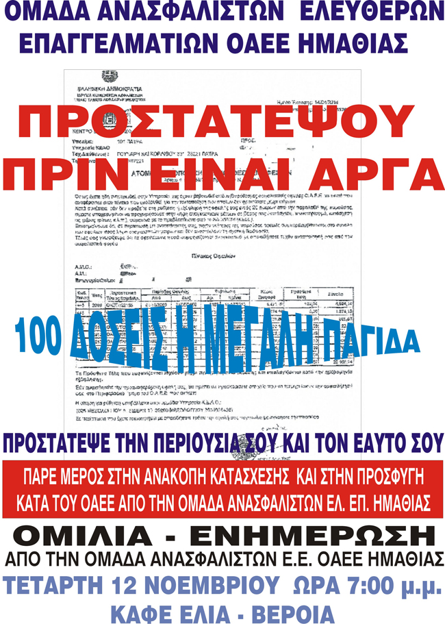 Εκδήλωση για τα ασφαλιστικά προβλήματα των επαγγλεματοβιοτεχνών πραγματοποιείται την Τετάρτη 12/11 στη Βέροια από την "Ομάδα Ανασφάλιστων ΟΑΕΕ"