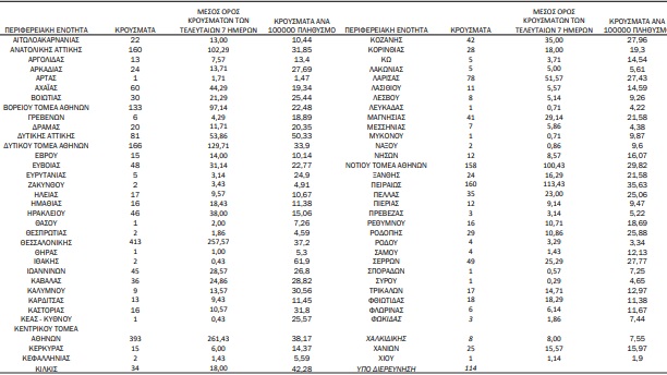 1 Με βάση τα επιβεβαιωμένα κρούσματα των τελευταίων 7 ημερών, 54