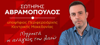 Την Πέμπτη στις 16 Μαΐου 2019 θα επισκεφθεί την Ημαθία ο υποψήφιος Περιφερειάρχης Κεντρικής Μακεδονίας με την «Λαϊκή Συσπείρωση» Αβραμόπουλος Σωτήρης.