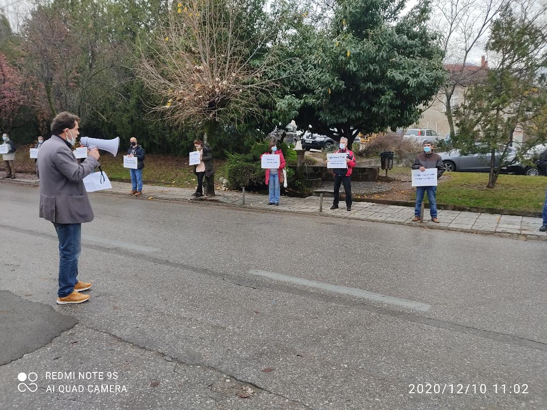 10 Δεκέμβρη έξω από το Νοσοκομείο Νάουσας, τηρώντας όλα τα απαραίτητα μέτρα