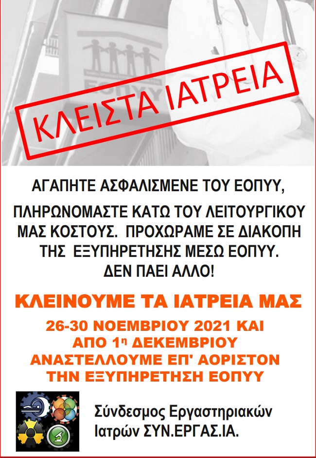 Καλεσμα για συμμετοχη στις κινητοποιησεις των Εργαστηριακων Ιατρων