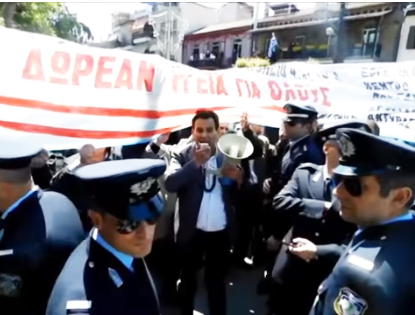 Με κινητοποίηση «έκλεισε» η σημερινή παρέλαση στη Νάουσα. Το Εργατικό Κέντρο Νάουσας πραγματοποίησε κινητοποίηση- παρά την αρχική απαγόρευση της αστυνομίας που εμπόδισε τη διέλευση μπρος τους επισήμους μέχρι την αποχώρησή τους- με αιχμή τα ζητήματα της Υγείας και ιδιαίτερα του νοσοκομείου της περιοχής. Κεντρικό σύνθημα «Τα Νοσοκομεία ανήκουν στους εργάτες και όχι στα παράσιτα τους κεφαλαιοκράτες»
