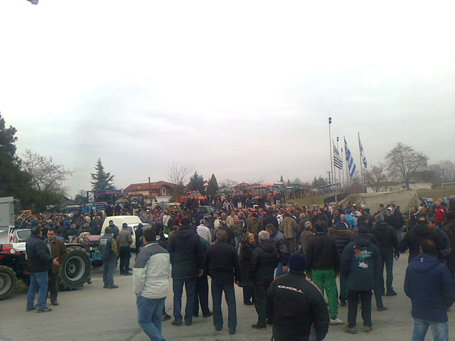 Εκατοντάδες αγρότες, με τα αγροτικά τους μηχανήματα, συγκεντρώθηκαν στην Κουλούρα, μετά από κάλεσμα των τριών νεοσύστατων αγροτικών συλλόγων των Δήμων Βέροιας, Νάουσας και Αλεξάνδρειας. Έκδηλη ήταν η αγανάκτηση για την ακολουθούμενη αντιαγροτική πολιτική της κυβέρνησης, με αιχμή το φορολογικό, αλλά και η διάθεση για ανεβασμένες μορφές πάλης (π.χ κλείσιμο Εθνικής οδού) κάτι που δεν έγινε σήμερα με ευθύνη των διοικήσεων των αγροτικών συλλόγων, που δίνοντας όπως είπαν διορία στην κυβέρνηση, αποφάσισαν να το πραγματοποιήσουν το πρωί της Πέμπτης 6/2. Στους συγκεντρωμένους μίλησαν εκπρόσωποι των τριών αγροτικών συλλόγων, των αγροτών εκπροσώπων από το Πλεύρωμα της Πέλλας, καθώς και ο αντιπεριφερειάρχης Κώστας Καραπαναγιωτίδης και οι δήμαρχοι Βέροιας, Νάουσας, Αλεξάνδρειας. Επίσης διαβάστηκαν δηλώσεις συμπαράστασης μαζικών φορέων, ενώ από τους διοργανωτές δεν δόθηκε ο λόγος σε εκπροσώπους του ΣΥΡΙΖΑ.