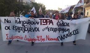 Το Σωματείο Διαλογής - Ψύξης Νάουσας καλεί τους εργαζόμενους αγωνιστικά να διεκδικήσουν:Ουσιαστική προστασία όλων των ανέργων, αύξηση του επιδόματος ανεργίας στα 600 ευρώ, το διάστημα της ανεργίας να αναγνωρίζεται ως συντάξιμος χρόνος, ένταξη στο ταμείο ανεργίας με 80 ένσημα χωρίς να αφαιρούνται οι δύο τελευταίοι εργάσιμοι μήνες. Να καταργηθούν το άρθρο 53 του νόμου 3518/2006 και η εγκύκλιος του ΙΚΑ 42/26-5-2008 που νομιμοποιούν την ανασφάλιστη εργασία, το άρθρο 39 του νόμου 3986/2011 που θέτει την προϋπόθεση των 400 ημερών επιδότησης τα τελευταία 4 χρόνια και να αλλάξει η εγκύκλιος 118454/1989 που χαρακτηρίζει επιχειρήσεις εποχικές ή μη. Ενταξη στο νόμο 1836/89 για όσους πραγματοποιούν από 30 έως 80 ένσημα το χρόνο. Θεώρηση βιβλιαρίου υγείας χωρίς όρους και προϋποθέσεις. Να καταργηθεί ο νόμος που επιβάλλει την πραγματοποίηση 500 μεροκάματων την τελευταία 5ετία πριν τη συνταξιοδότηση. Κατώτερη σύνταξη στα 600 ευρώ, κατάργηση όλων των αντιασφαλιστικών νόμων. Κατοχύρωση σύνταξης ΙΚΑ με 2.000 εποχικά ένσημα. Ενταξη στα βαρέα και ανθυγιεινά. Κατάργηση του ΕΝΦΙΑ και όλων των χαρατσιών, απαγόρευση πλειστηριασμών για την εργατική - λαϊκή οικογένεια. Να μην κοπούν ρεύμα - νερό σε καμία λαϊκή οικογένεια. Μόνιμη και σταθερή εργασία για όλους, αύξηση σε μισθούς και συντάξεις, κάλυψη των απωλειών, κατάργηση των ατομικών συμβάσεων εργασίας, κανένας εργαζόμενος να μην πληρώνεται κάτω από 751 ευρώ. (ΦΩΤΟ αρχείου)