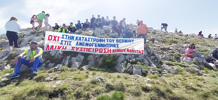 Τη Δευτέρα 8 Ιουνίου, μέλη της ''Λαϊκής Συσπείρωσης'' του Δήμου Νάουσας ανέβηκαν στο Άγιο Πνεύμα και ανάρτησαν πανό, διατρανώνοντας μ' αυτόν τον τρόπο την αντίθεση της ''Λαϊκής Συσπείρωσης'' στην εγκατάσταση ανεμογεννητριών στο Βέρμιο και στην καταστροφή του περιβάλλοντος.
