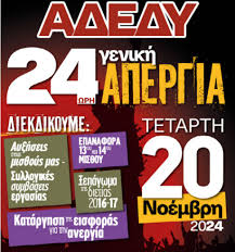 στην 24ωρη Γενική Απεργία την Τετάρτη 20 του Νοέμβρη 2024 και στην απεργιακή