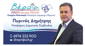 Ο Δημήτριος Πυρινός υποψήφιος Δημοτικός Σύμβουλος Βέροιας με το συνδυασμό "ΒΕΡΟΙΑ ΠΡΩΤεύουσα ΠΟΛΗ" με υποψήφια Δήμαρχο τη Γεωργία Μπατσαρά