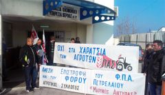 Συναδελφισσες –συνάδελφοι η πλήρης απουσία του κράτους για την προστασία της παραγωγής μας ,παρά τα αυξημένα ασφάλιστρα στο ΕΛΓΑ ,η άδικες αποζημιώσεις σε πολλούς συναδέλφους μας, σε συνδυασμό με την μετατροπή των συνεταιρισμών σε διεκπεραιωτή υποχρεώσεων του υπουργείου χαρατσώνοντας τους αγρότες ,παρά τον ευρωπαϊκό κανονισμό που απαγορεύει ρητά να παρακρατούνται χρήματα για τις δηλώσεις ,καθώς και η συμμετοχή των συνεταιρισμών στην συμβολαιακη γεωργία θα σφίξει σαν θηλιά στο λαιμό της φτωχομεσαίας αγροτιάς .