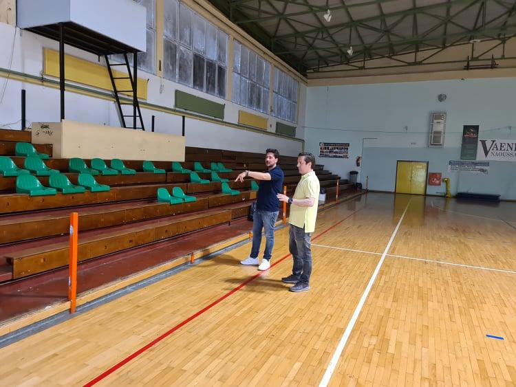 Στη συνέχεια ο κ. Καρανικόλας, συνοδευόμενος από τον Αντιδήμαρχο Νεολαίας, Παιδείας και Αθλητισμού, Γιώργο Τριανταφύλλου επισκέφθηκε το κλειστό γυμναστήριο Νάουσας, όπου γίνονται εργασίες συντήρησης και καλλωπισμού.