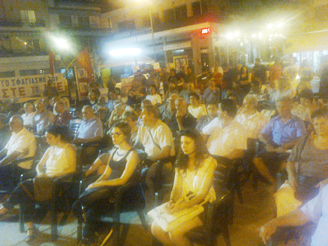 Ομιλητής ήταν ο Θανάσης Χρηστίδης μέλος του γραφείου περιοχής Κ. Μακεδονίας του ΚΚΕ που ανάμεσα στ’ άλλα τόνισε τα εξής: «Λίγες μόλις εβδομάδες πριν από την κάλπη, νέες παγίδες στήνονται μπροστά στο λαό. Για να τον πείσουν ότι έχει μία και μόνη επιλογή:Να επιλέξει δηλαδή, ποιος θα ολοκληρώσει τη σφαγή του, ποιος, ποια κυβέρνηση θα υλοποιήσει το 3ο σκληρότερο μνημόνιο που ήρθε να προστεθεί στα προηγούμενα.Σκεφτείτε αυτό που δεν το είχατε υποπτευθεί ποτέ πριν μερικούς μήνες: Κόμματα που τσακώνονται μεταξύ τους, είπαν ΝΑΙ στο 3ο μνημόνιο. ΝΔ - ΠΑΣΟΚ - ΠΟΤΑΜΙ από τη μια και ΣΥΡΙΖΑ - ΑΝΕΛ από την άλλη. Τι άλλη απόδειξη χρειάζεστε, όσοι και όσες δεν έχετε πειστεί ότι υπάρχουν στην πραγματικότητα, μόνο 2 διαχωριστικές πολιτικές γραμμές, ότι υπάρχει μια ταξική διαχωριστική γραμμή: Ή με το κεφάλαιο, τα μονοπώλια, ή με την εργατική τάξη και τους συμμάχους της.Ή με την αστική πολιτική εξουσία ή με την εργατική λαϊκή εξουσία. Ή με το ένα Μέτωπο που είναι αντεργατικό, αντιλαϊκό, ανεξάρτητα από ονόματα, συνθήματα, προθέσεις, ή με το Μέτωπο, τη Συμμαχία της εργατικής τάξης, των φτωχών αυτοαπασχολούμενων λαϊκών στρωμάτων.…20 μέρες πριν τις εκλογές και το κάλεσμα του ΚΚΕ θα φτάσει παντού σε κάθε λαϊκό σπίτι και δω στην Κοκκινιά και στις άλλες φτωχογειτονιές του Πειραιά, εδώ που κάθε λαϊκή οικογένεια ανεβαίνει το δικό της Γολγοθά για να τα βγάλει πέρα. Δεν θα περιγράψουμε τίποτα που δεν ξέρει ο άνεργος, ο εργαζόμενος, ο αυτοαπασχολούμενος, το νέο παιδί και η γυναίκα της λαϊκής οικογένειας. Θέλουμε όμως αυτή τη φορά να σταθούμε δίπλα τους και να τους πούμε: Τώρα ΚΚΕ. Τους δοκίμασες τους άλλους… Τώρα με το ΚΚΕ υπάρχει λύση, στο δρόμο της ανατροπής…»