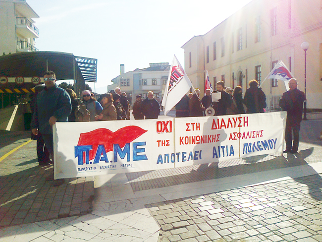 Μαζική εξόρμηση –πικετοφορία στο κέντρο της Βέροιας, πραγματοποίησαν δυνάμεις του ΠΑΜΕ το πρωί του Σαββάτου 23 Γενάρη στο πλαίσιο της προετοιμασίας της πανεργατικής απεργίας στις 4 Φλεβάρη. Μοιράζοντας προκηρύξεις κρατώντας πανό και φωνάζοντας συνθήματα όπως «Με αίμα έχει γίνει η Ασφάλιση. Δεν είναι για παζάρια και για διάλυση» κάλεσαν το λαό της περιοχής να συμμετάσχει μαζικά στην απεργία και στο συλλαλητήριο που διοργανώνει το ΠΑΜΕ.