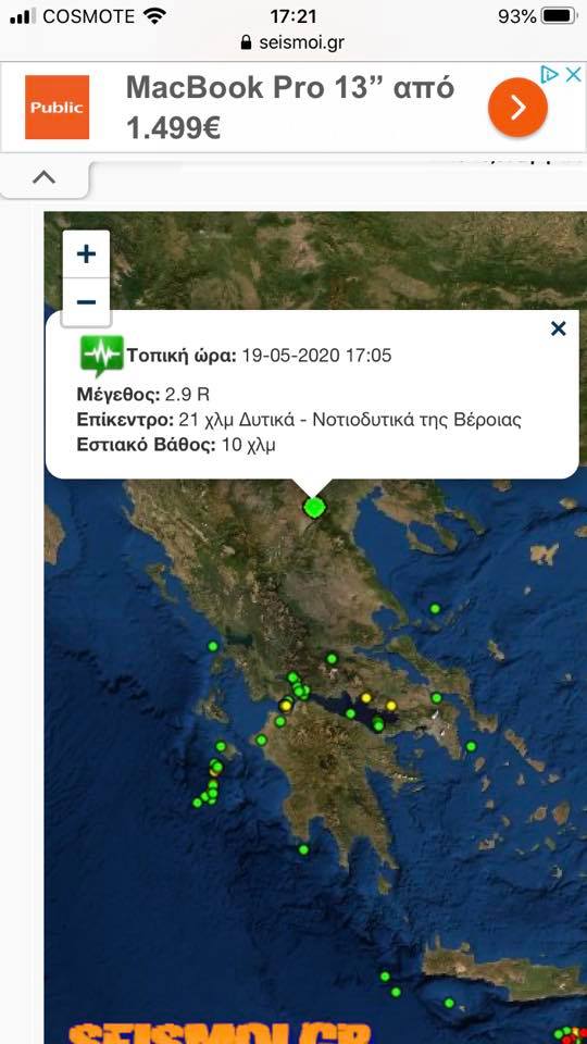 Σεισμός μεγέθους 2,9 Ρίχτερ σημειώθηκε στη Βέροια