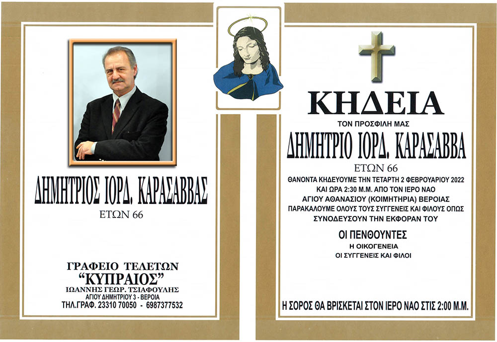 Σήμερα η κηδεία του Δημήτρη Καρασσάβα