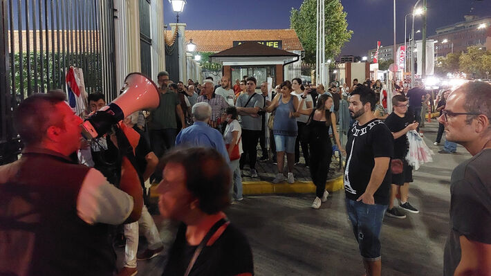 Απαίτησαν να ανοίξουν αμέσως οι πόρτες και κατήγγειλαν την προκλητική παρουσία της αστυνομίας για την «προστασία» των ΝΑΤΟϊκών την ίδια ώρα που ο λαός μας πνίγεται και καίγεται.