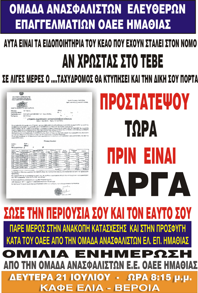 Συγκέντρωση ανασφάλιστων του ΟΑΕΕ Ημαθίας στη Βέροια