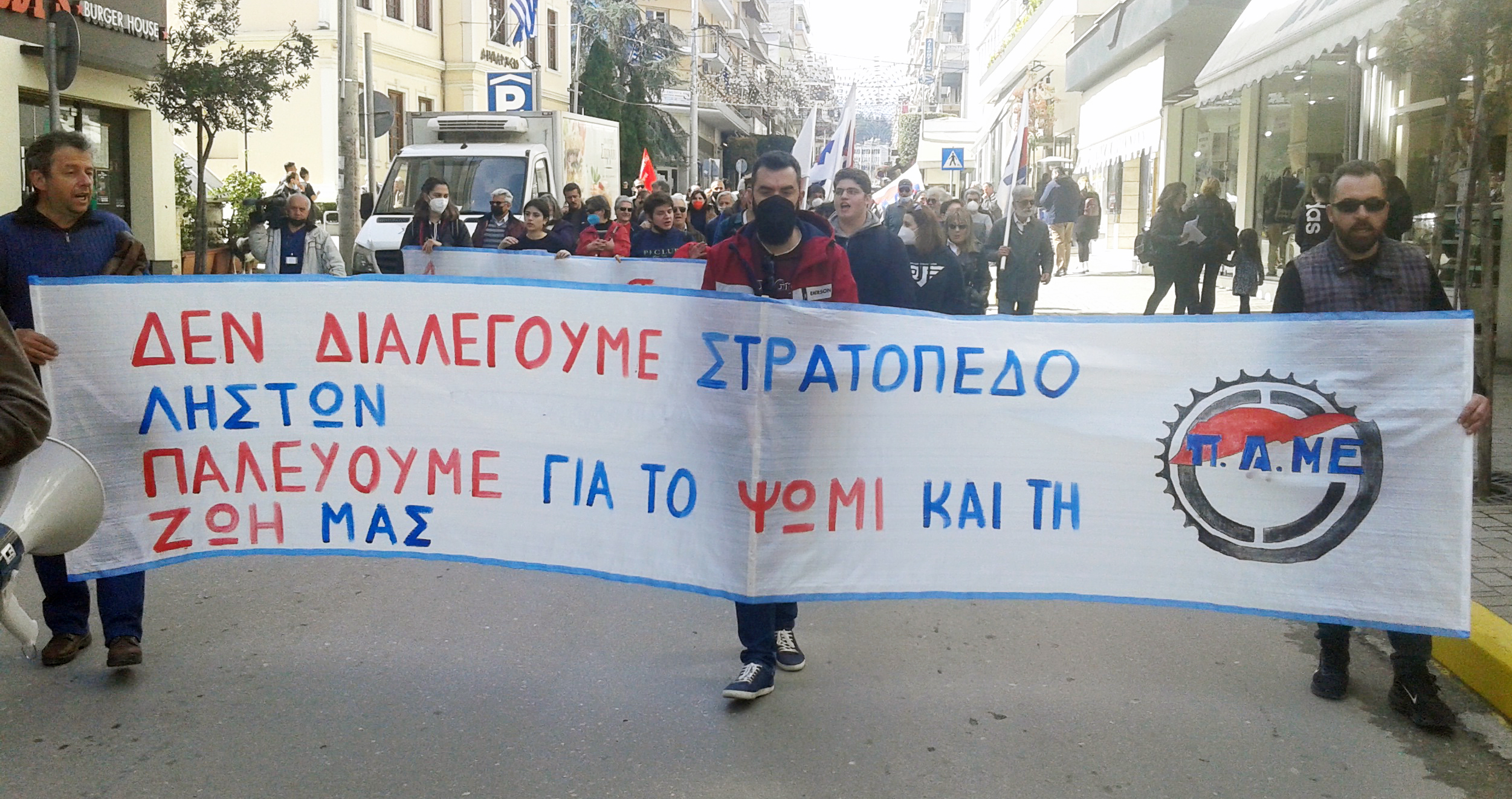 Από τους ομιλητές τονίστηκε ότι απεργία είναι έμπρακτη απάντηση στην κυβέρνηση της ΝΔ, είναι απάντηση στη μεγαλοεργοδία που όλοι μαζί τρομοκρατούν και εκβιάζουν τους εργαζόμενους, ότι τώρα δεν είναι ώρα για διεκδικήσεις. Ότι τώρα δεν είναι ώρα για να αγώνες, για να ανακουφιστούν τα εργατικά και λαϊκά νοικοκυριά από το κύμα ακρίβειας που εξανεμίζει το εισόδημά τους.Δεν είναι δυνατόν την ίδια στιγμή που οι ελληνικές κυβερνήσεις είναι πρώτες στις ΝΑΤΟικές δαπάνες, πληρώνοντας πάνω από 4 δισ. ευρώ το χρόνο σε εξοπλισμούς που δεν έχουν καμία σχέση με την άμυνα της χώρας, να κουνάνε το δάχτυλο στους εργαζόμενους, να επικαλούνται τις “αντοχές” της οικονομίας και να μας λένε ότι πρέπει να ζούμε με ψίχουλα. Για δε τον συνεχιζόμενο πόλεμο στην Ουκρανία υπογραμμίστηκε ότι ηαπεργία γίνεται σε περίοδο ενός ακόμα ιμπεριαλιστικού πολέμου στη γειτονιά μας όπου το σύνολο των αστικών κομμάτων σαν έτοιμα από καιρό στρατεύτηκαν με το ένα από τα δύο ιμπεριαλιστικά στρατόπεδα και στηρίζουν ενεργά τους ΝΑΤΟικούς συμμάχους τους στέλνοντας όπλα και παραχωρώντας όλες τις αναγκαίες διευκολύνσεις μέσω του ελληνικού εδάφους να προωθηθούν στρατεύματα στα σύνορα της Ουκρανίας. Σκοπός τους είναι να εξυπηρετήσουν με τον καλύτερο δυνατό τρόπο την αστική τάξη της χώρας, στο να πάρει μέρος από τη λεία του πολέμου. Τα κέρδη από αυτό το μακέλεμα του ουκρανικού λαού είναι ήδη πολλά, το εφοπλιστικό κεφάλαιο με την μεταφορά LNG από την Αμερική που θα του επιφέρει τεράστια κέρδη.