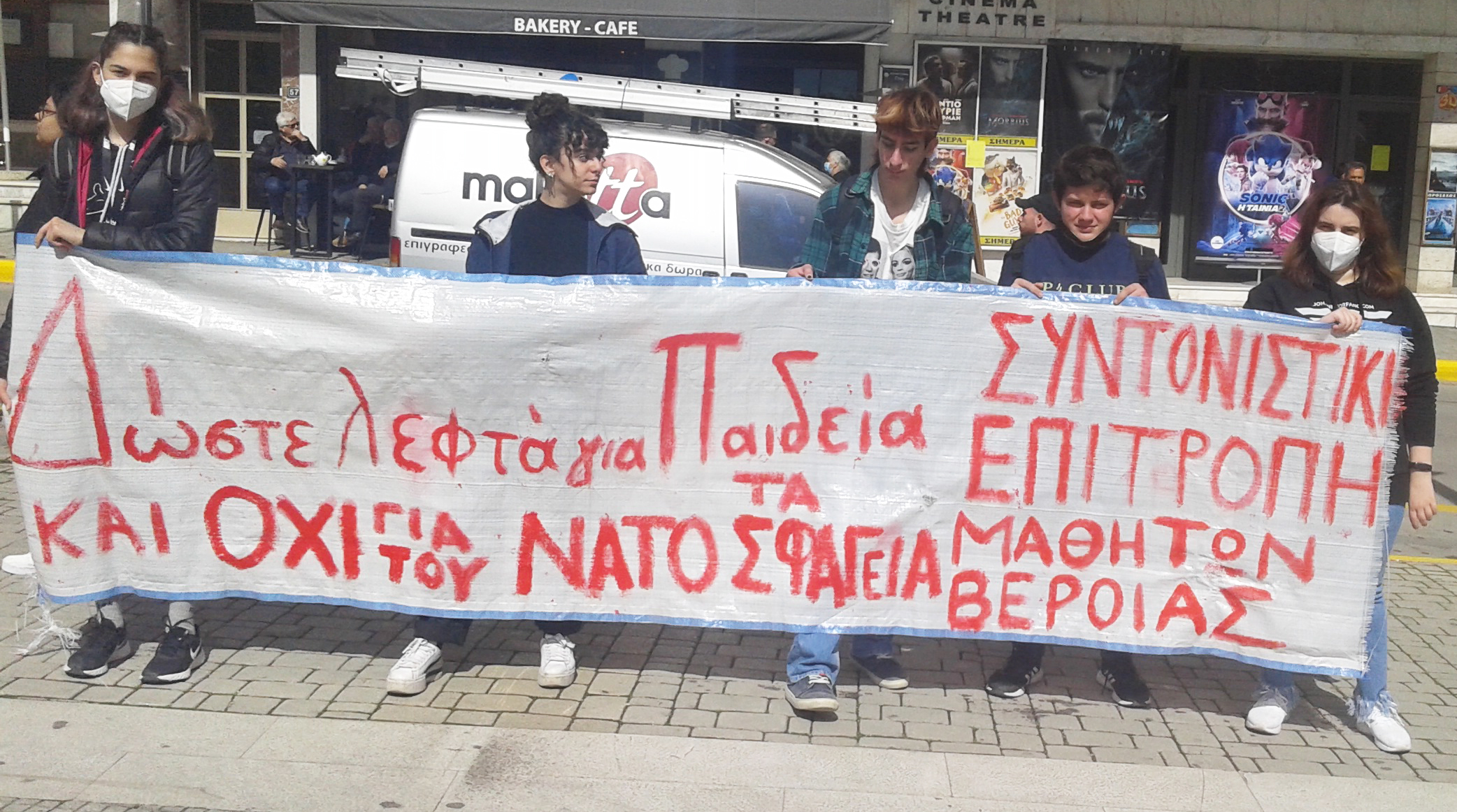 Στη συγκέντρωση παραβρέθηκαν και μαθητές από των «Συντονιστική Επιτροπή των Μαθητών της Βέροιας». Στους συγκεντρωμένους χαιρετισμό απεύθυναν η Στέλα Ιακωβίδου μέος του Δ.Σ του Εργατικού Κέντρου Νάουσας και ο Σούλης Ανδρεόπουλος, μέλος του Δ.Σ του Σωματείου Συνταξιούχων ΙΚΑ Βέροιας. Τη κεντρική ομιλία έκανε ο Γιάννης Τσεχελίδης μέλος του Ν.Τ Ημαθίας της ΑΔΕΔΥ.