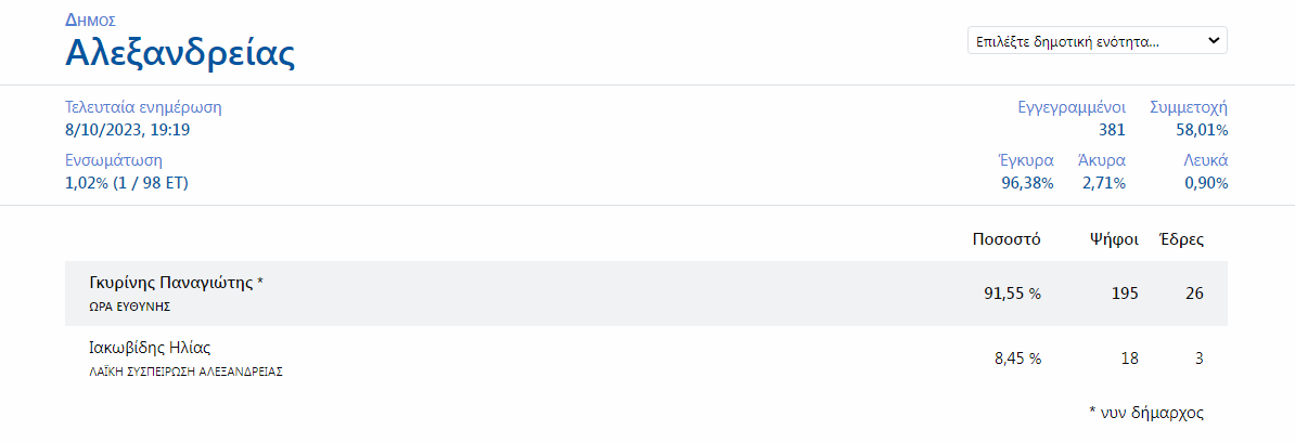 Τα πρώτα εκλογικά αποτελέσματα των Δημοτικών Εκλογών στην Ημαθία