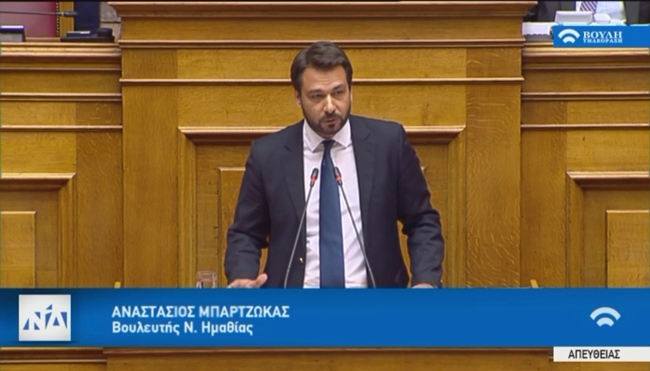 Στη Βουλή τοποθετήθηκε ο βουλευτής Ημαθίας Τάσος Μπαρτζώκας επί των προτεινόμενων υπό αναθεώρηση διατάξεων, που αφορούν το καθεστώς ασυλίας των βουλευτών και την ποινική δίωξη των μελών της Κυβέρνησης.