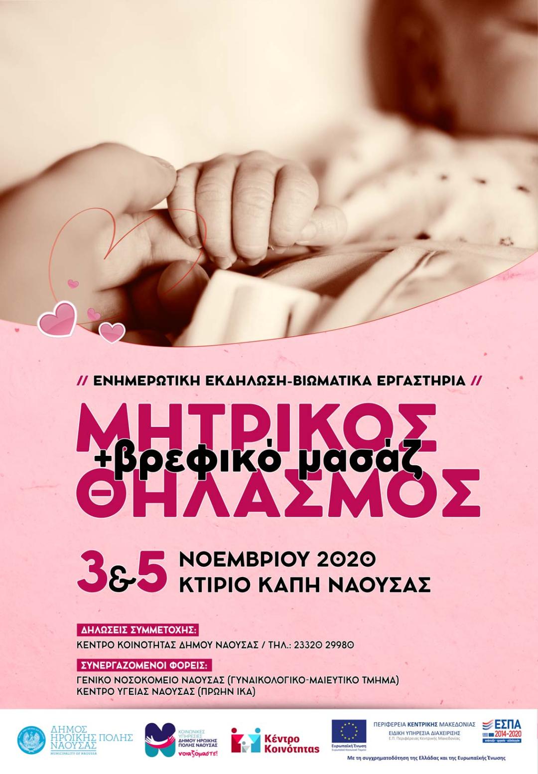 ΝΑΟΥΣΑ: ΕΝΗΜΕΡΩΤΙΚΗ ΕΚΔΗΛΩΣΗ & ΒΙΩΜΑΤΙΚΑ ΕΡΓΑΣΤΗΡΙΑ ΓΙΑ ΤΟΝ ΜΗΤΡΙΚΟ ΘΗΛΑΣΜΟ ΚΑΙ ΤΟ ΒΡΕΦΙΚΟ ΜΑΣΑΖ