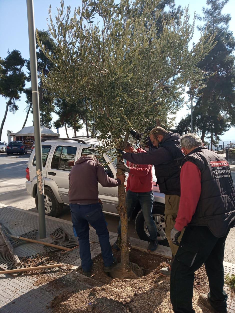 υπάλληλοι της αρμόδιας υπηρεσίας φύτευσαν ελιές σε παρτέρια, πεζοδρόμια, πάρκα